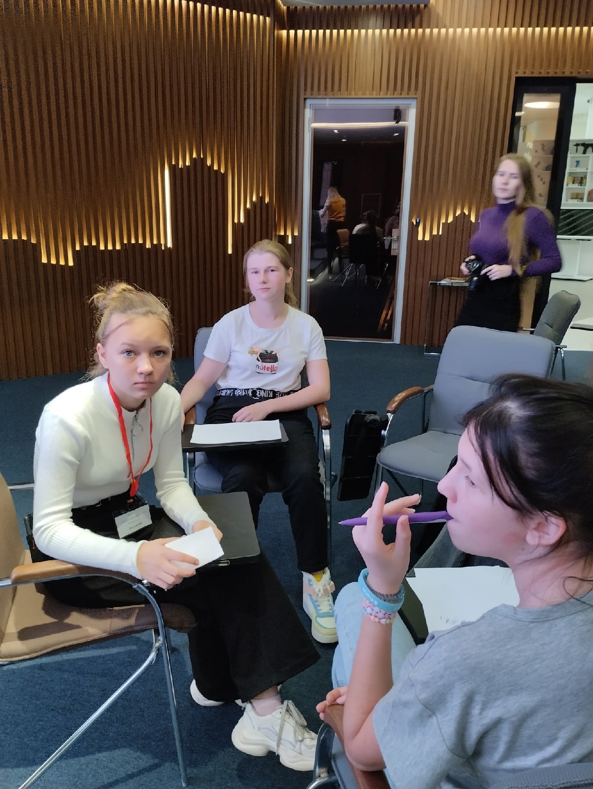 Практикум начался со знакомства в виде игры, где ребятам было предложено в течение 5 минут нарисовать часики из 12 делений и назначать друг другу встречу. Далее каждый час был направлен на разные темы, таким образом, ребята знакомились и узнавали много интересного о своем партнере. И в завершение, детей разделили на команды, где они должны были разработать бизнес план по реализации своего продукта.