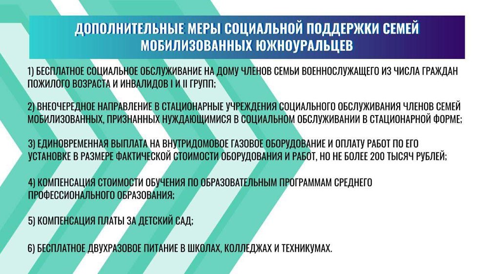 Кроме того, семьи мобилизованных южноуральцев могут получить выплату на внутридомовое газовое оборудование в размере фактической стоимости оборудования и работ, но не более 200 тыс. рублей. Обращаться в соцзащиту необходимо до заключения договора на поставку газа. «По решению губернатора Алексея Текслера размер выплаты для семей мобилизованных южноуральцев увеличен в 2 раза, со 100 тысяч до 200 тысяч рублей. На сегодняшний день на учет поставлены 23 семьи, большинство из которых мы выявили в проактивном режиме», – отметила министр.