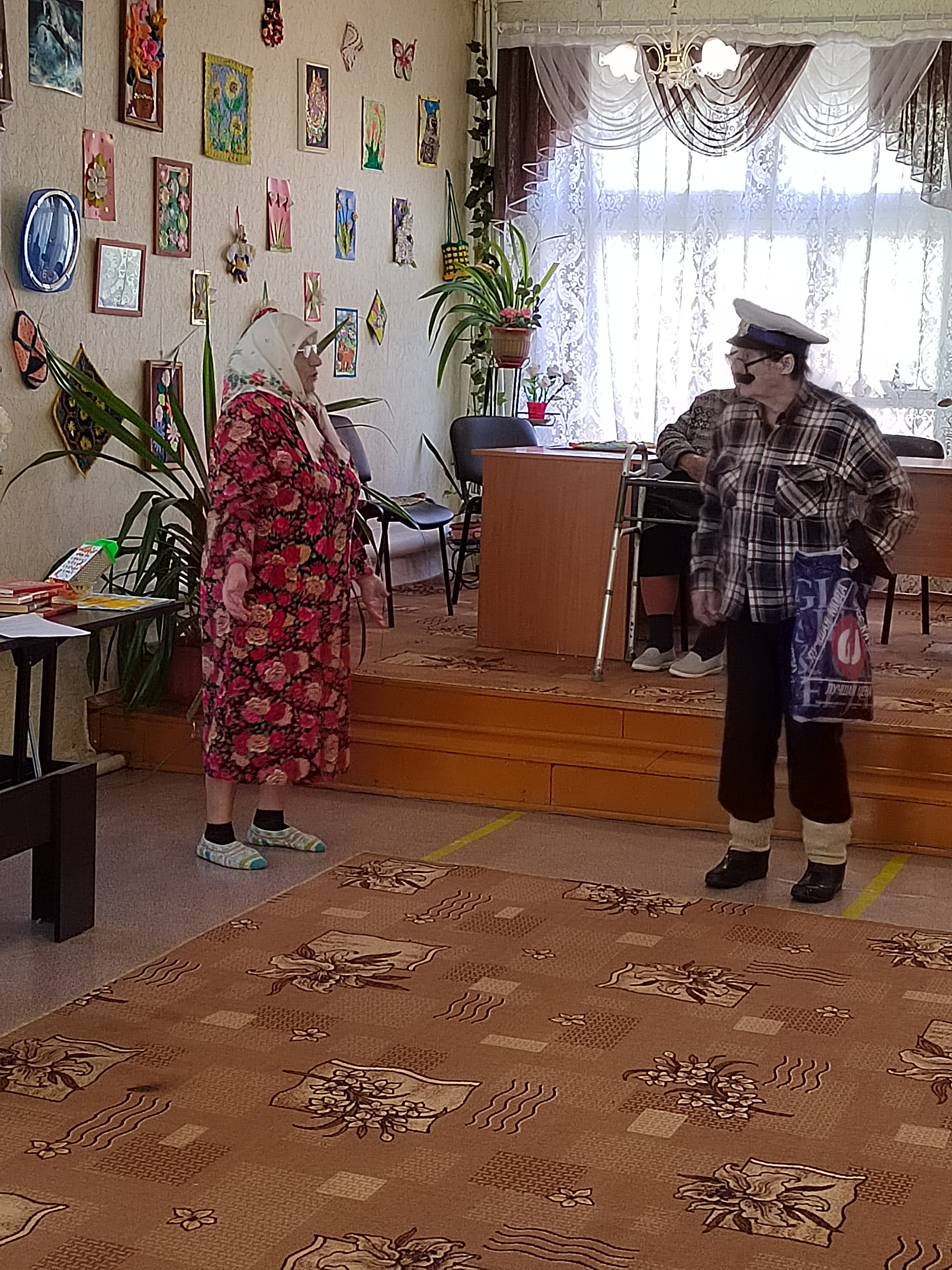 Заведующая отделением дневного пребывания Наталья Алексеевна Еремкина познакомила гостей с сотрудниками отделения рассказала, что вся работа специалистов направлена на то, чтобы люди пожилого возраста не чувствовали себя одинокими и оторванными от жизни. Планируя свою работу, специалисты отделения дневного пребывания стремятся разнообразить досуг отдыхающих, учитывая интересы каждого. Все гости приняли участие в театрализованной сценка «Майонез», выполнили коллективную работу, настенное панно - из гофрированной бумаги «Цветик – семицветик».