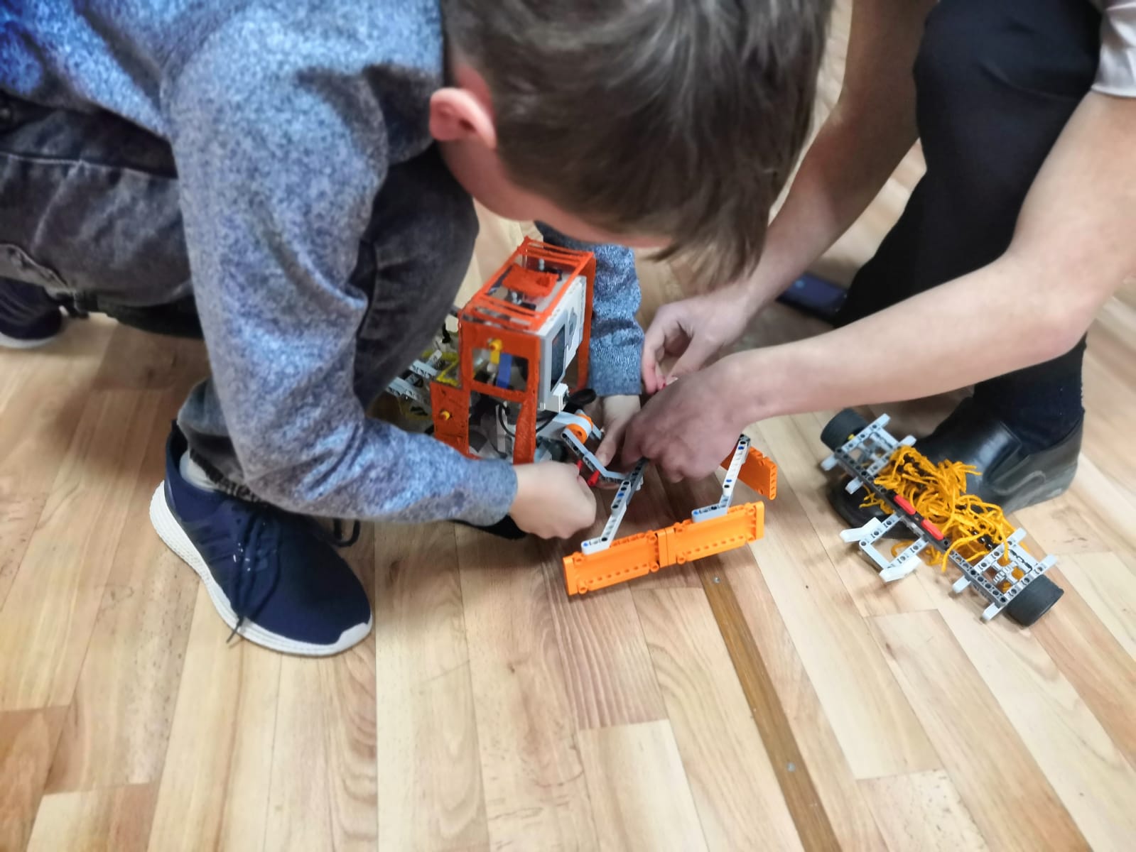 Максименко Дмитрий, Максименко Михаил и Амельченко Николай сконструировали трактор на основе робототехники, причем идея принадлежит девятилетнему Максименко Михаилу.
