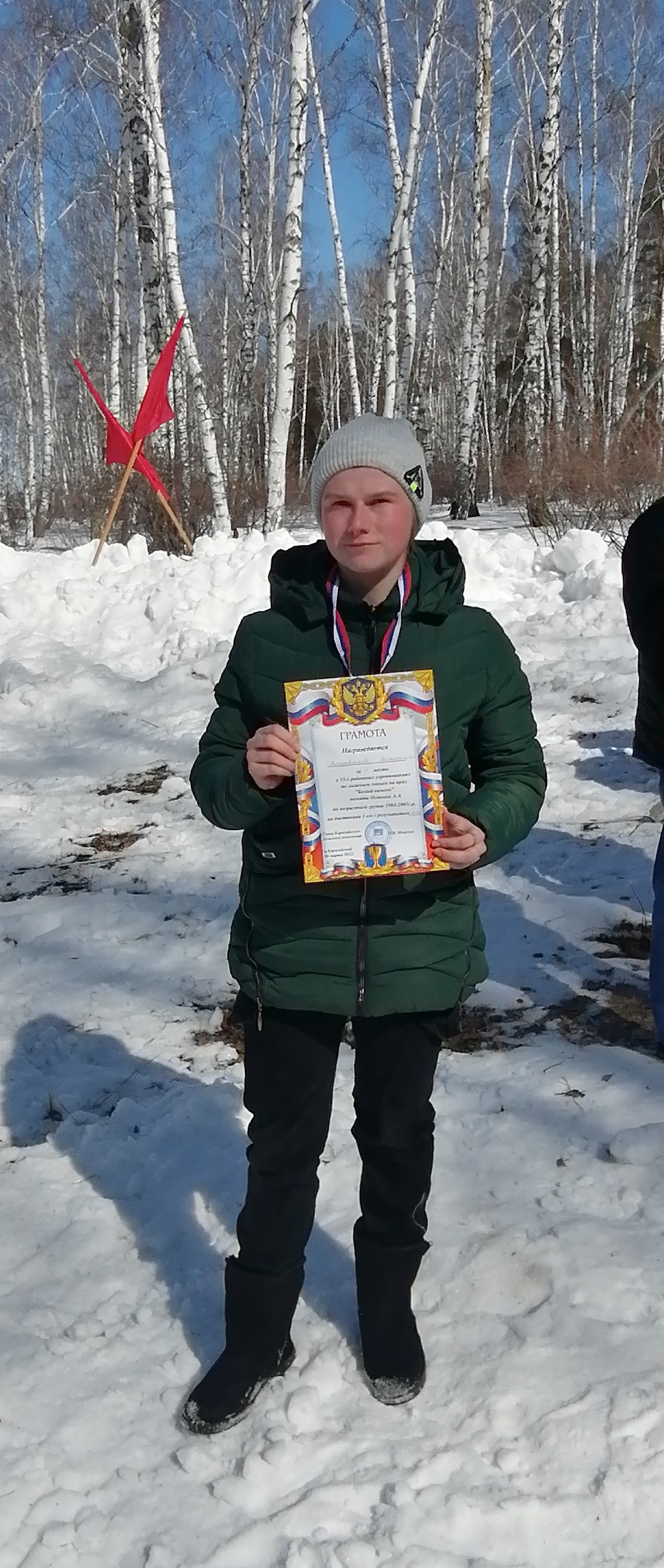 Серебряная медаль в награду от организаторов соревнований стала радостным событием в спортивном увлечении начинающей лыжницы.