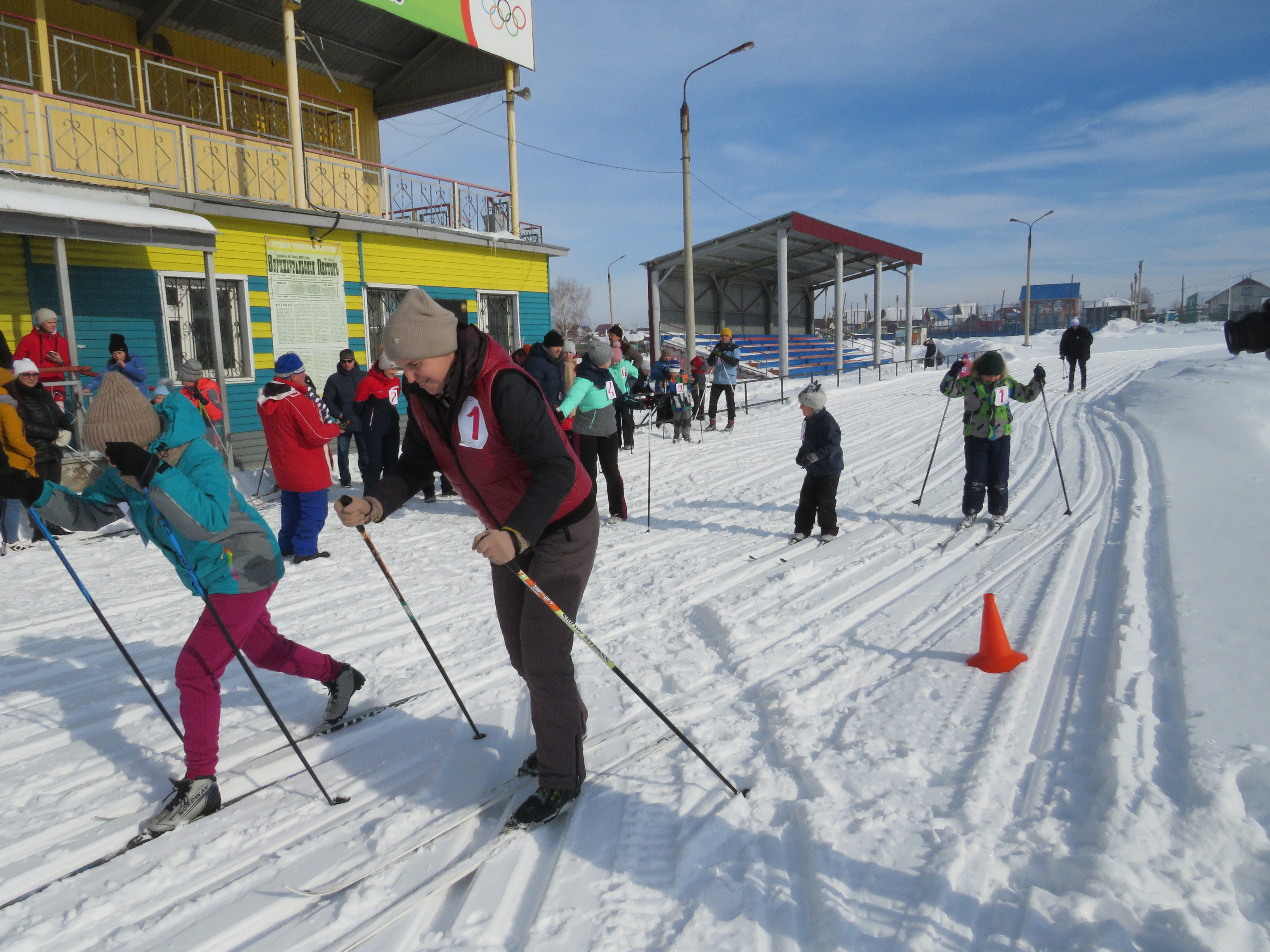 Спортивные семьи соревновались на лыжне стадиона в беге на лыжах и «Веселых стартах» на спортивной площадке.