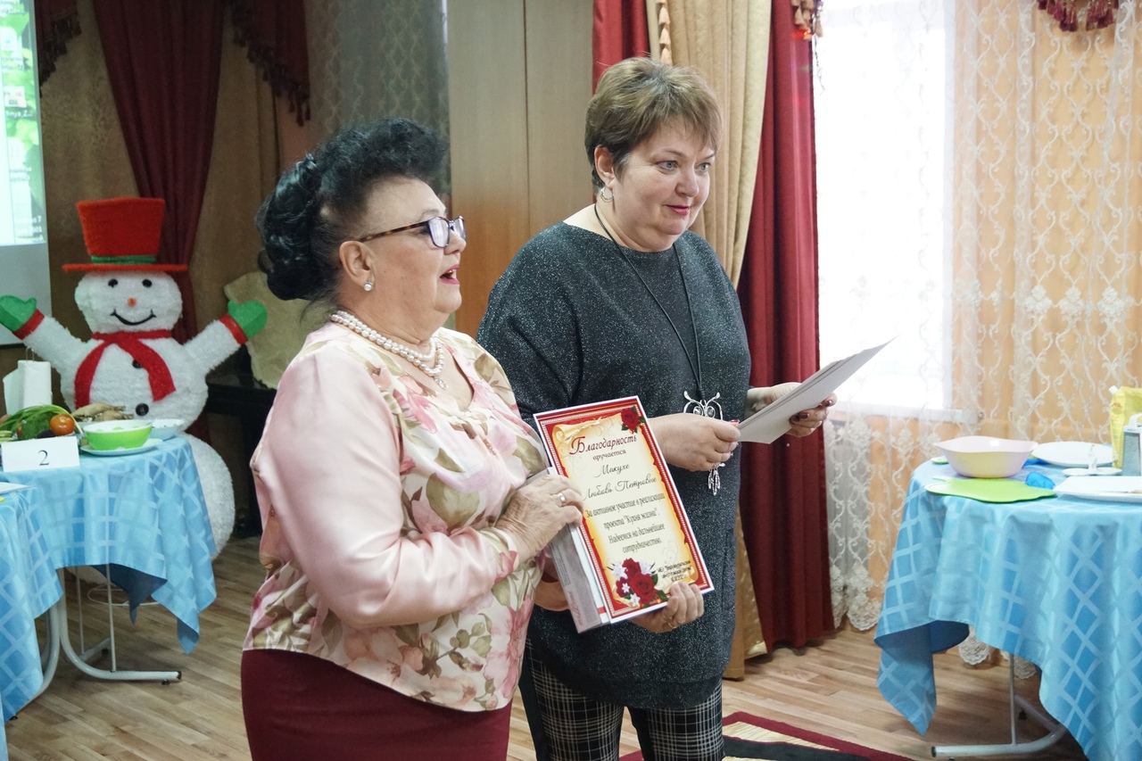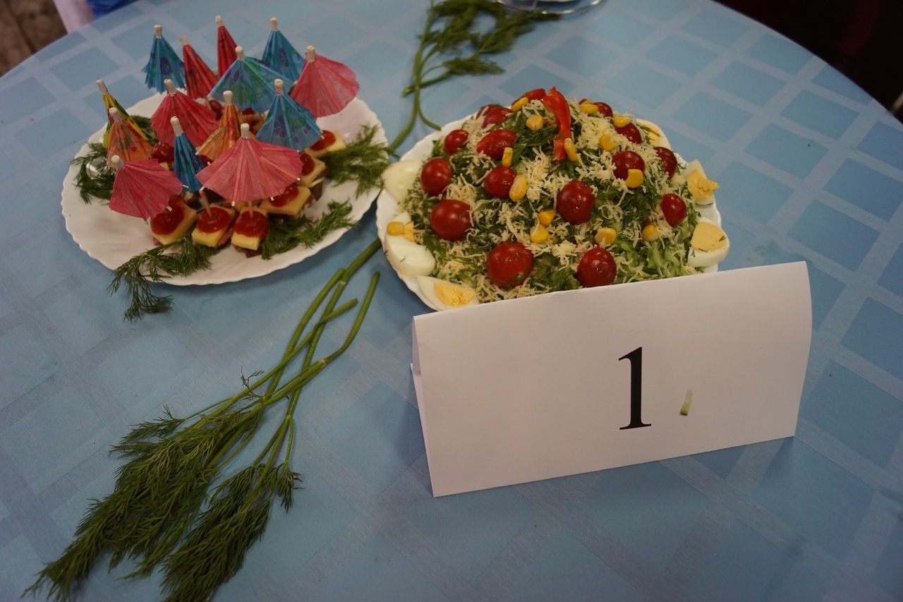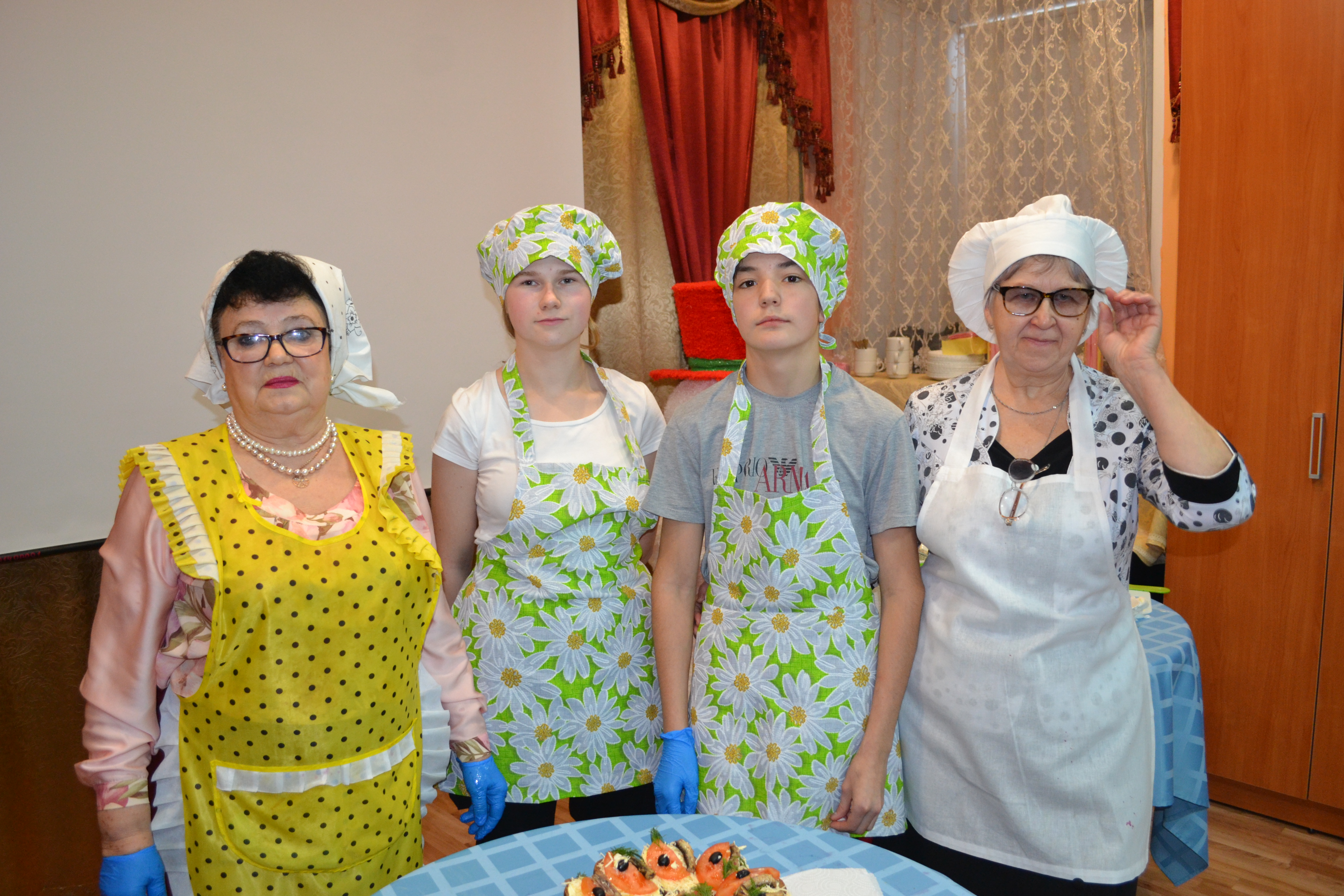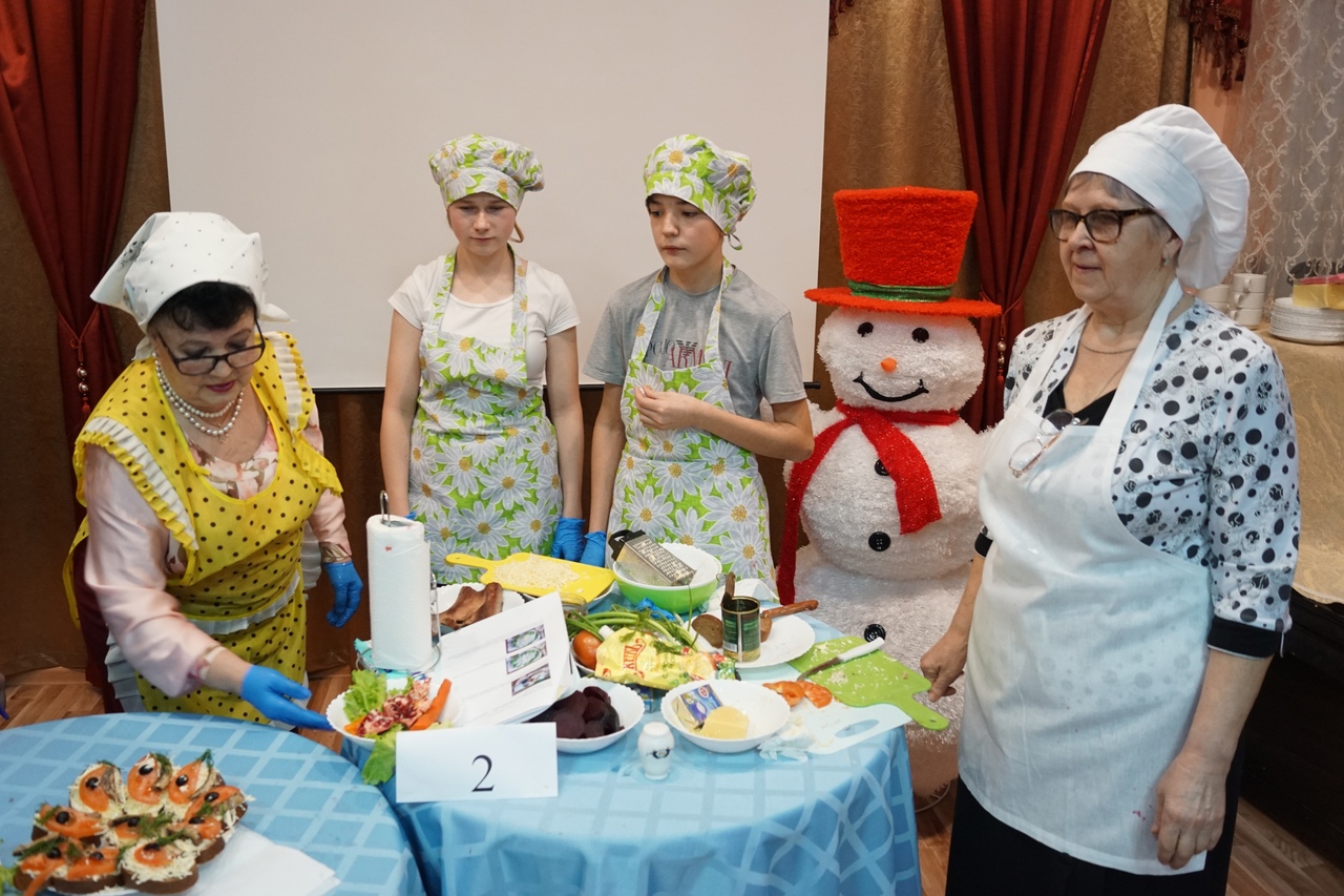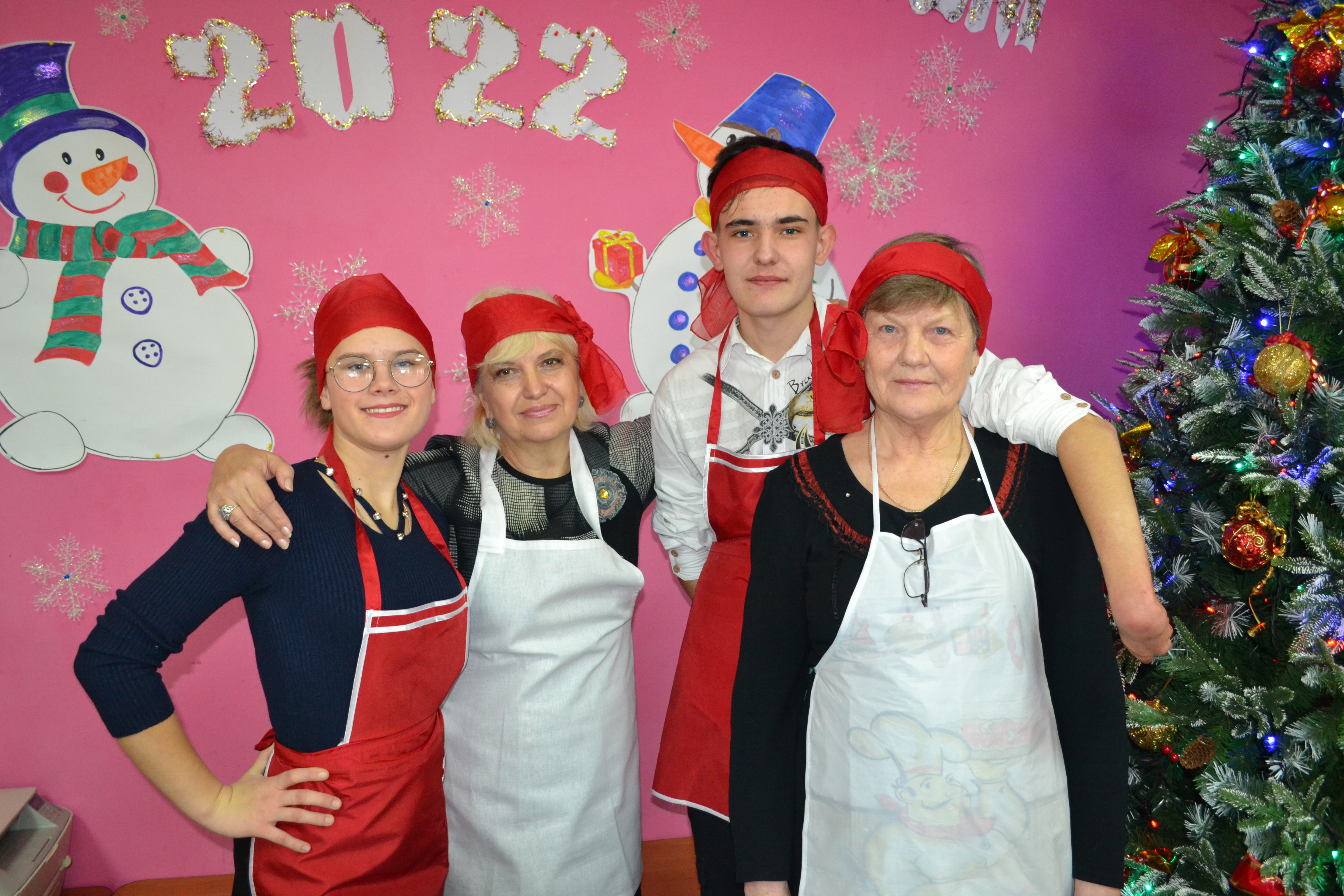 Итоговое мероприятие реализуемого проекта «Кухня жизни» под названием «Кулинарный поединок». В праздничном конкурсе участвовало три команды из четырех человек (взрослые и воспитанники Центра), с весёлыми названиями: «Ромашки», «Ватрушки» и «Поварешки». Каждая из них готовили салаты и бутерброды к новогоднему столу. Как в любом конкурсе было строгое, профессиональное и мудрое жюри, которые на пятерку оценили все приготовленные блюда.