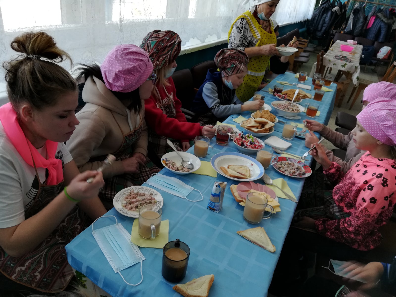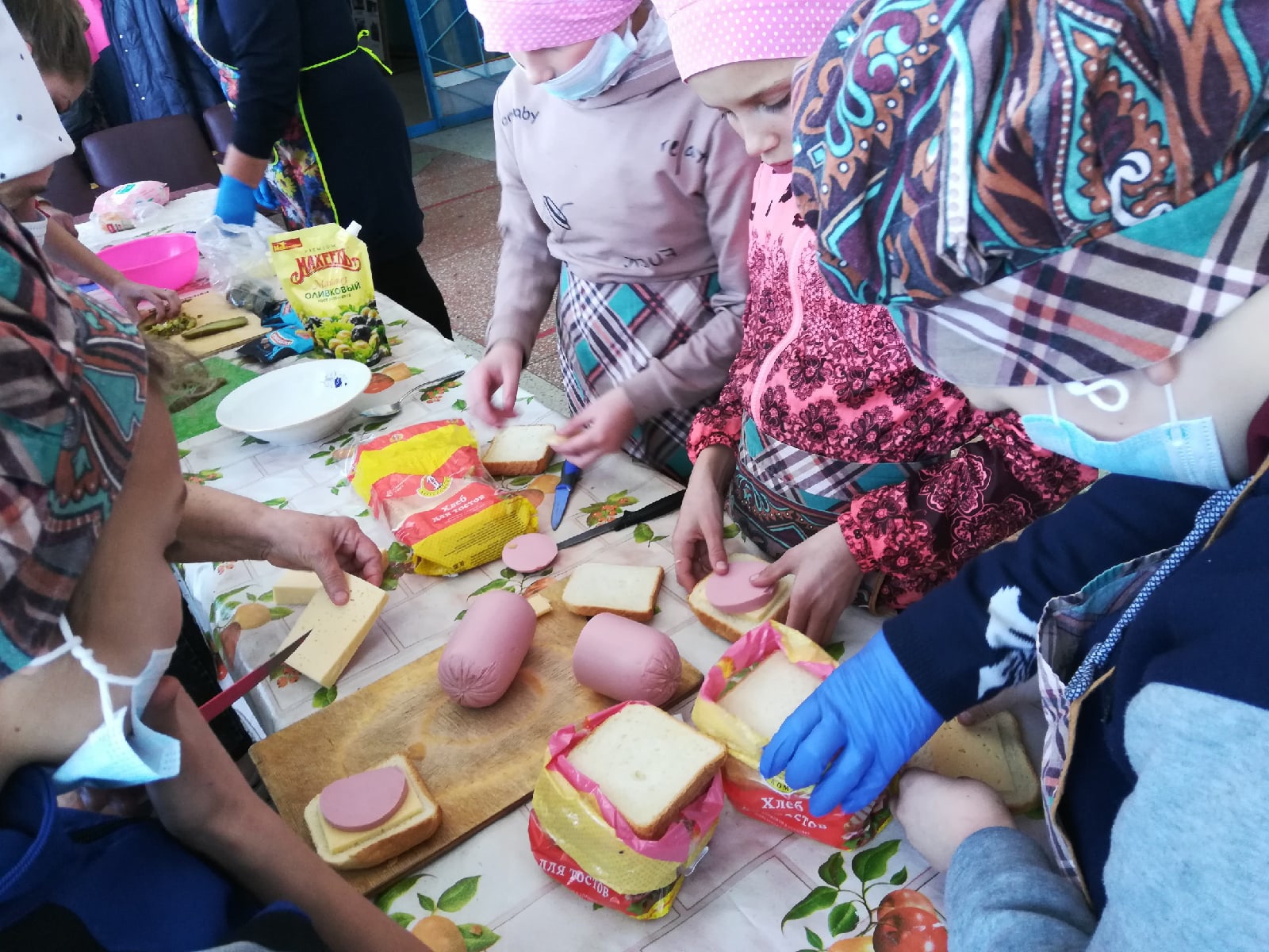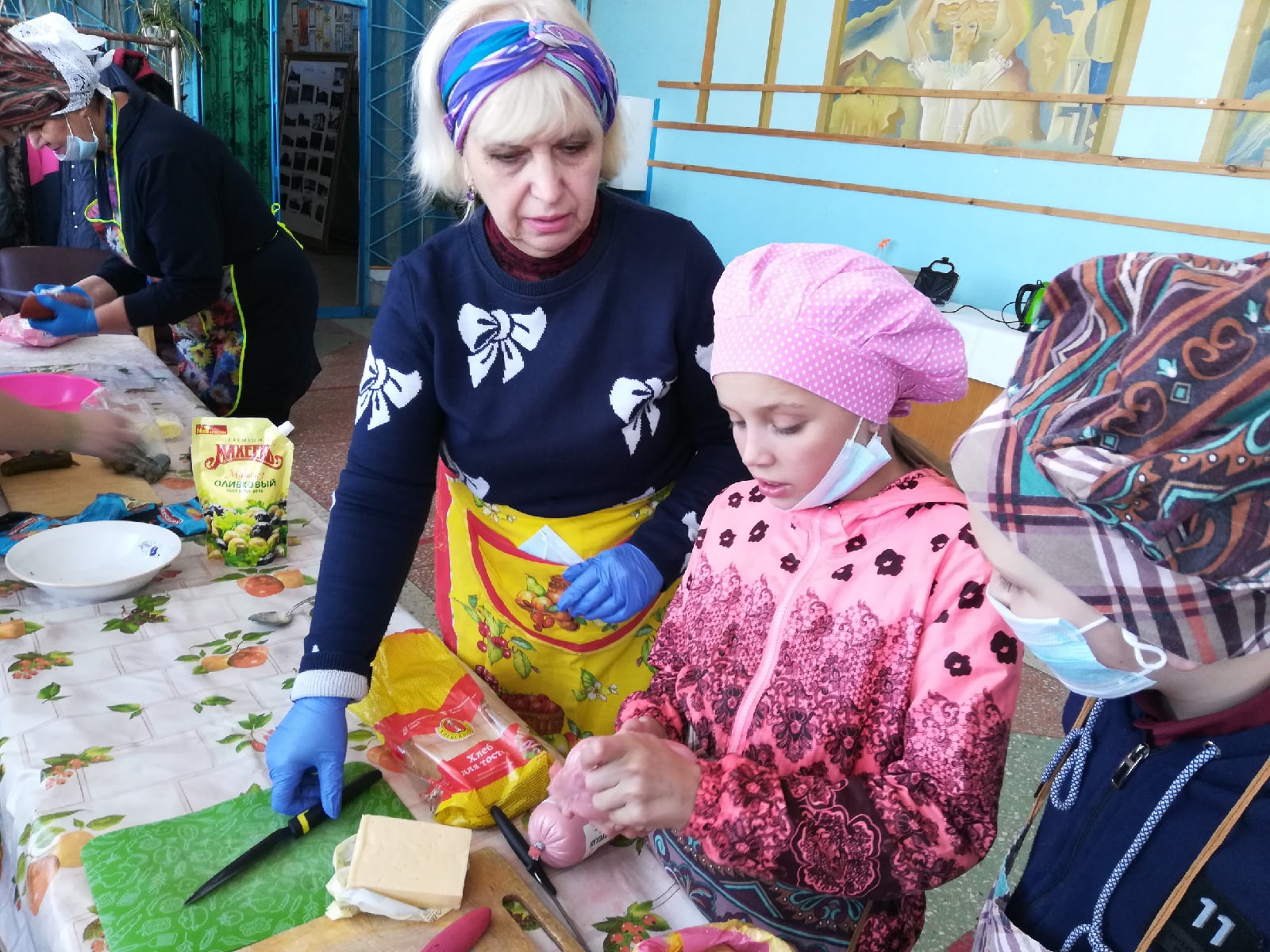 В рамках проекта «Кухня жизни» члены городского Совета ветеранов и дети из категории семей, находящихся в трудной жизненной ситуации организовали и провели Мастер-класс по приготовлению горячих бутербродов и салата из фасоли. Кулинарные занятия позволяют детям: познакомиться со свойствами продуктов, рецептами, технологией приготовления, а также развивают внимание и мелкую моторику.