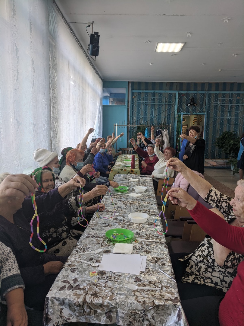 Культорганизатор и трудотерапевт Выдрина Л.Э. провела мастер-класс по изготовлению бус и игровую программу «Малые олимпийские игры». Пенсионеры играли в подвижные игры, соревновались в бросании мяча на меткость, а также показали свое мастерство и умение проявить смекалку. Забыв про свой пожилой возраст, все участники мероприятия с задором и веселым настроением выполняли все задания.