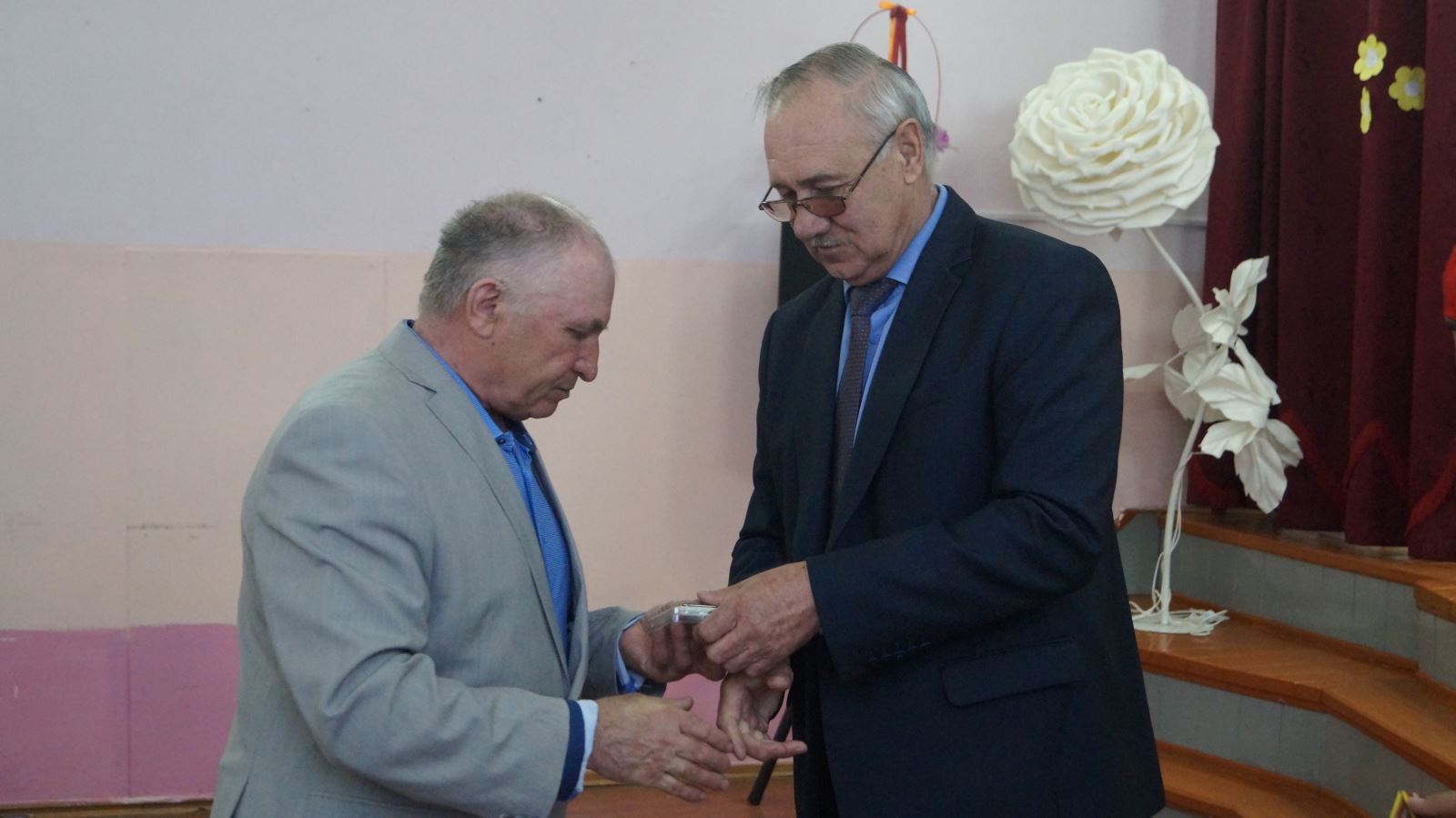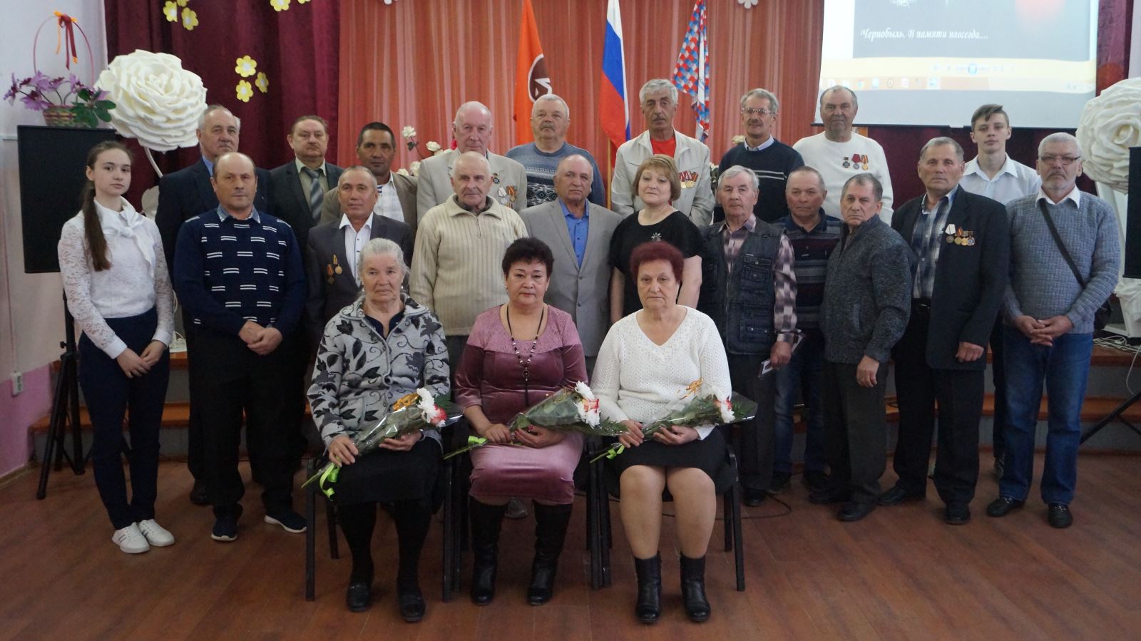 После выступления Сергей Енин вручил вдовам ликвидаторов букеты цветов.