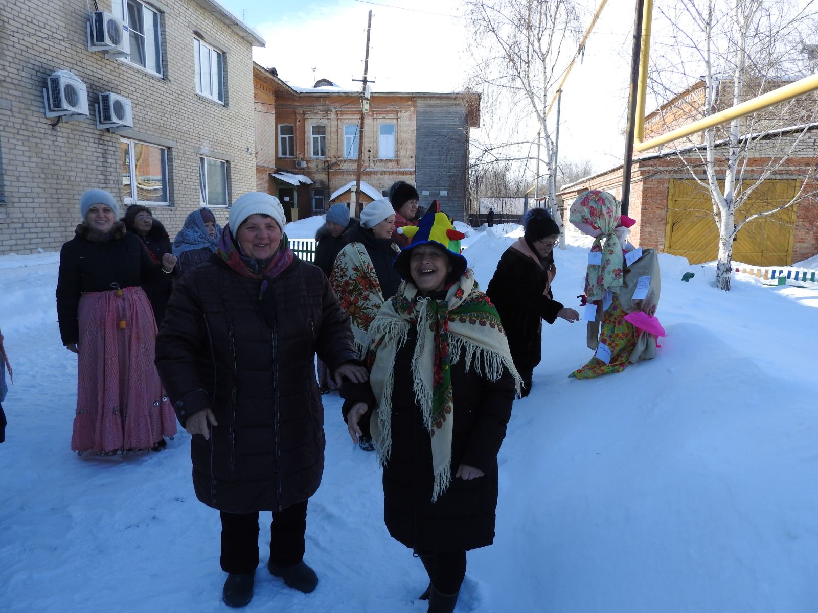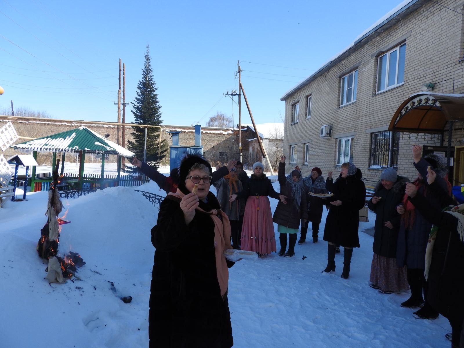 Отдыхающие отделения дневного пребывания Комплексного центра проводили масленицу сжиганием чучела и праздничными песнями.