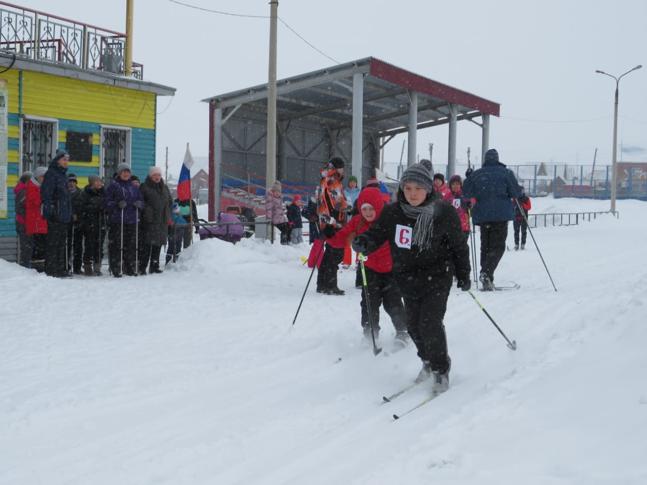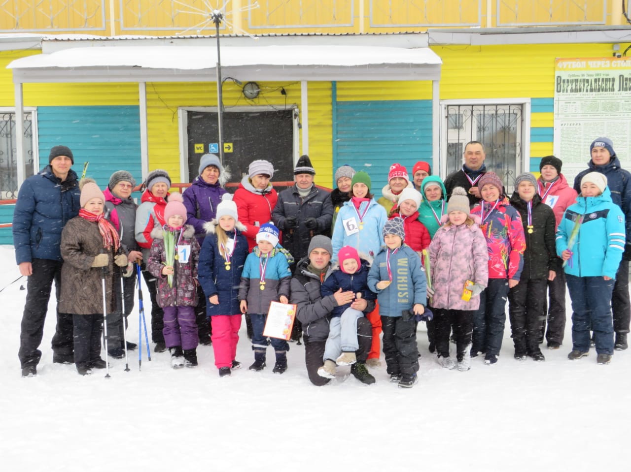 Семьи соревновались на стадионе в беге на лыжах и «Веселых стартах».