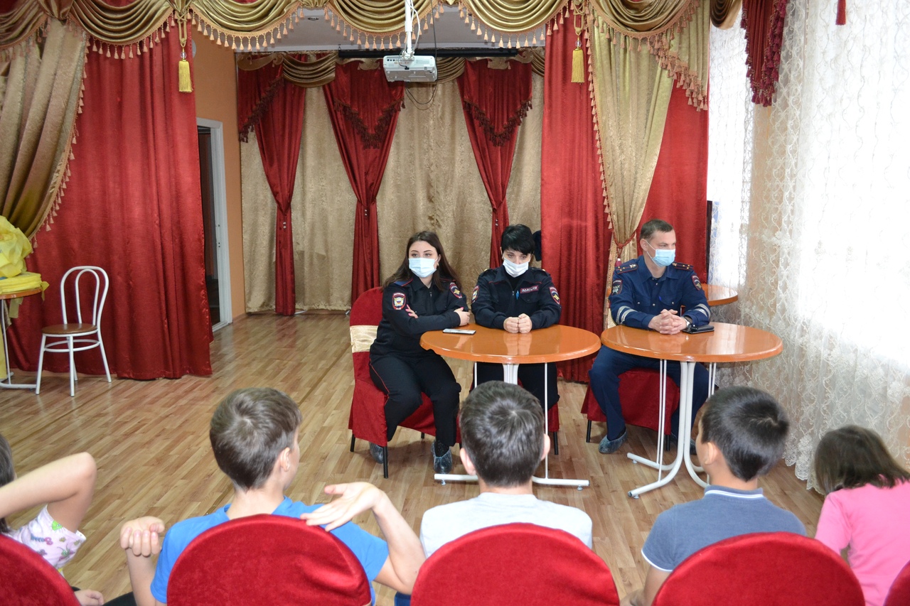 Сотрудники ОМВД провели с ребятами профилактическую беседу. Инспектор ДПС Михаил Мальцев напомнил о необходимости соблюдения правил дорожного движения, рассказал о правилах поведения на дороге, а также о том, для чего нужно обязательно пристегиваться в автомобиле и в автобусе. Старший инспектор ПДН Екатерина Егупова предупредила ребят об опасности различных курительных смесей и о последствиях их употребления. Немаловажной темой встречи было обсуждение правил общения в социальных сетях и безопасное использование сайтов в сети Интернет