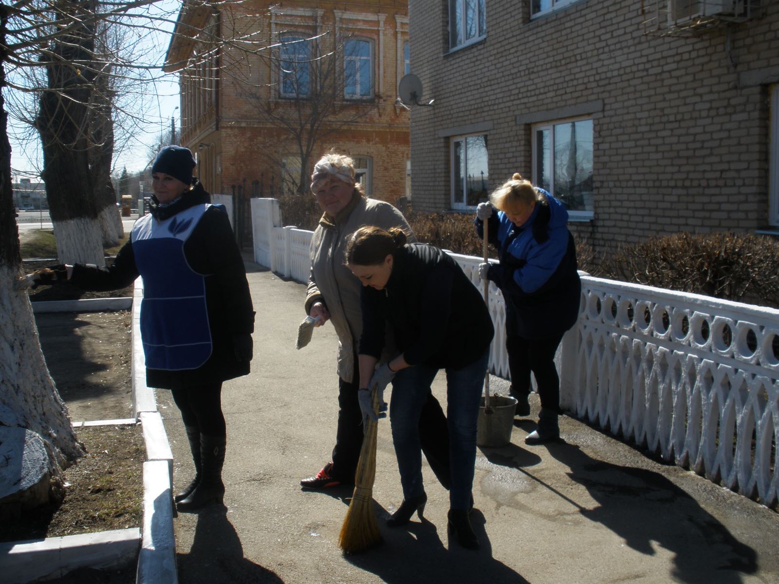 В середине апреля Главой района Сергеем Айбулатовым дан старт ежегодным субботникам. Сотрудники Комплексного центра социального обслуживания населения каждую пятницу дочиста метут, чистят и белят территорию возле своего здания, а так же закрепленную за учреждением часть городского сквера. Навести порядок и благоустроить прилегающую территорию - задача каждого жителя нашего города и района, считают участники субботника. После того как дорожки и заборчики стали чище, а сухая трава причесаннее, и на душе становится приятнее, да и «глаз радуется» такой красоте.